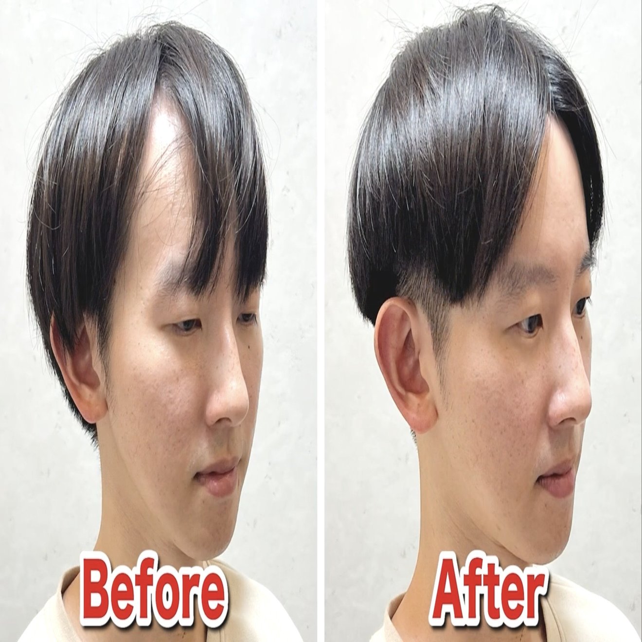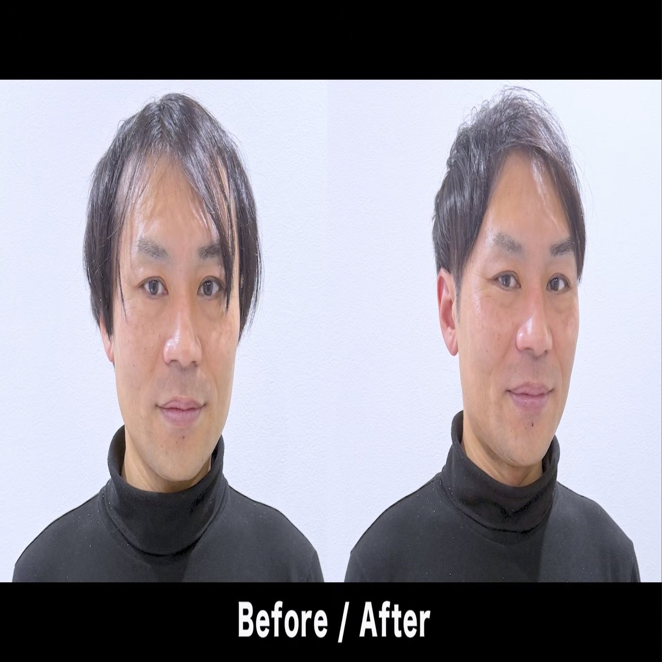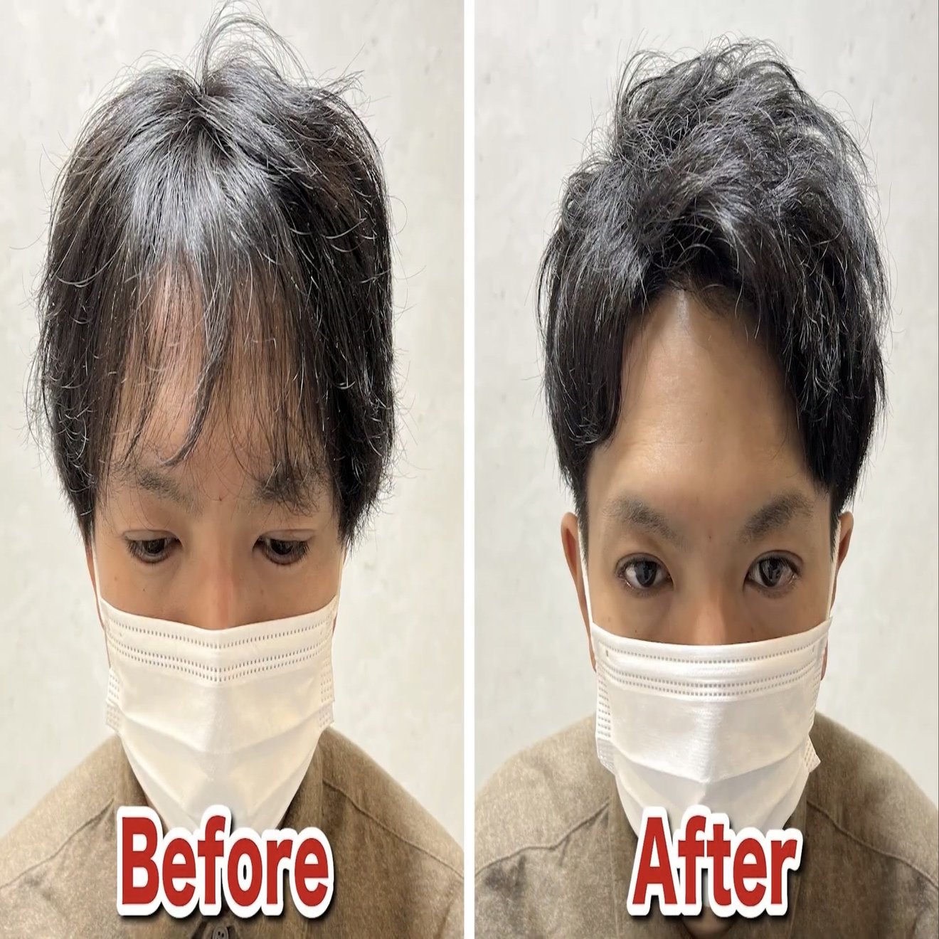 頭頂部のボリュームが出て、サイドもボリュームを抑えることによりバランスがいい髪型になりました。後ろから前に乾かすとM字もカバーできます。
