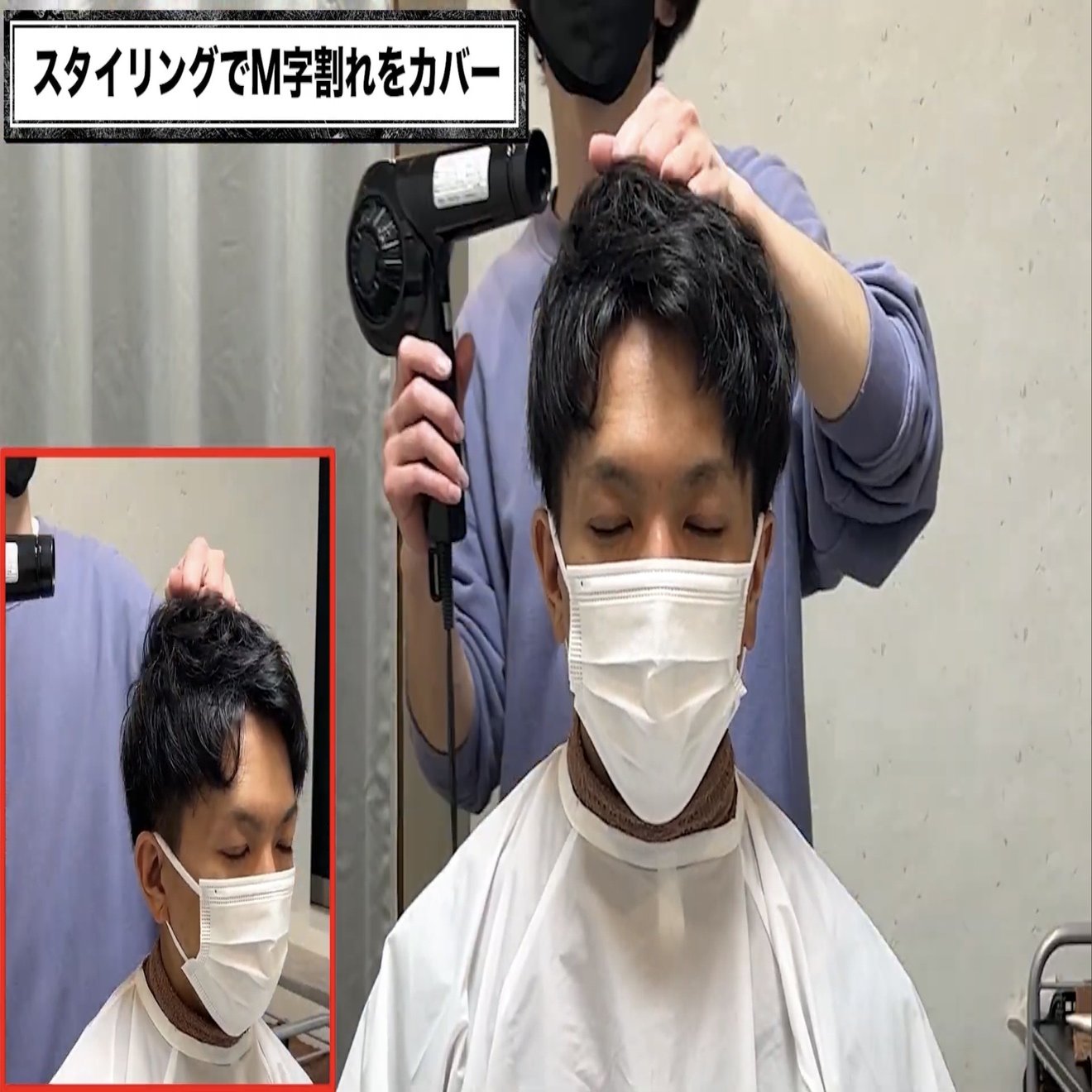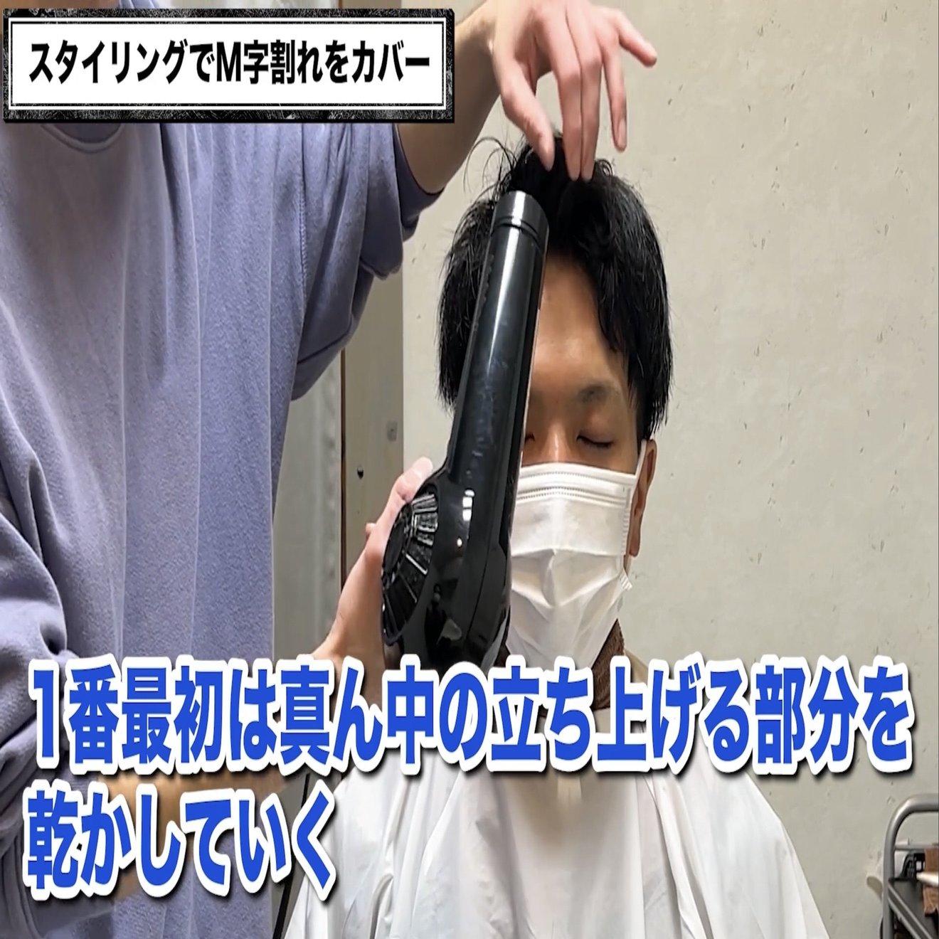 顔まわりを先に乾かし、サイドを抑えることによりM字をカバーしつつ
