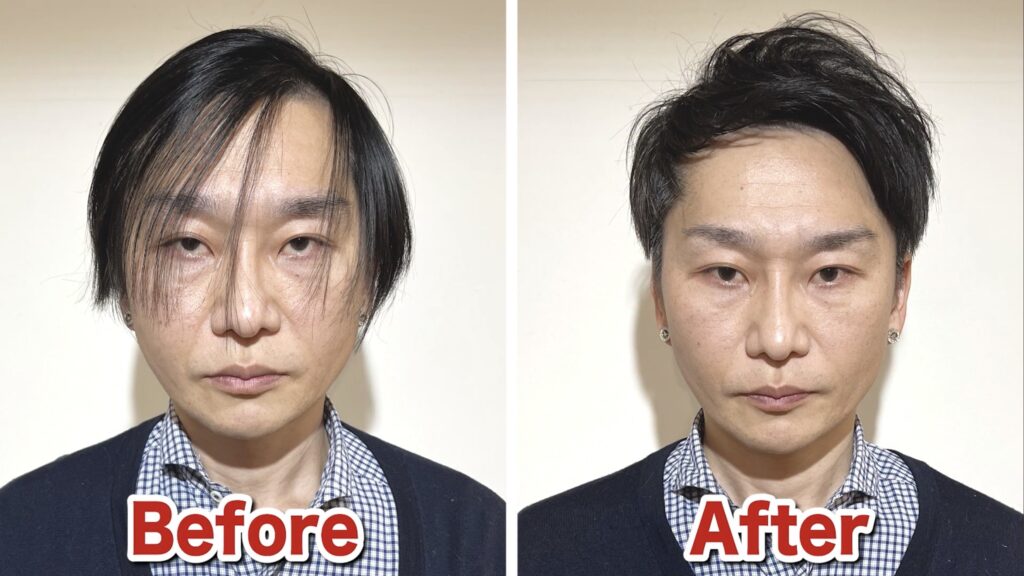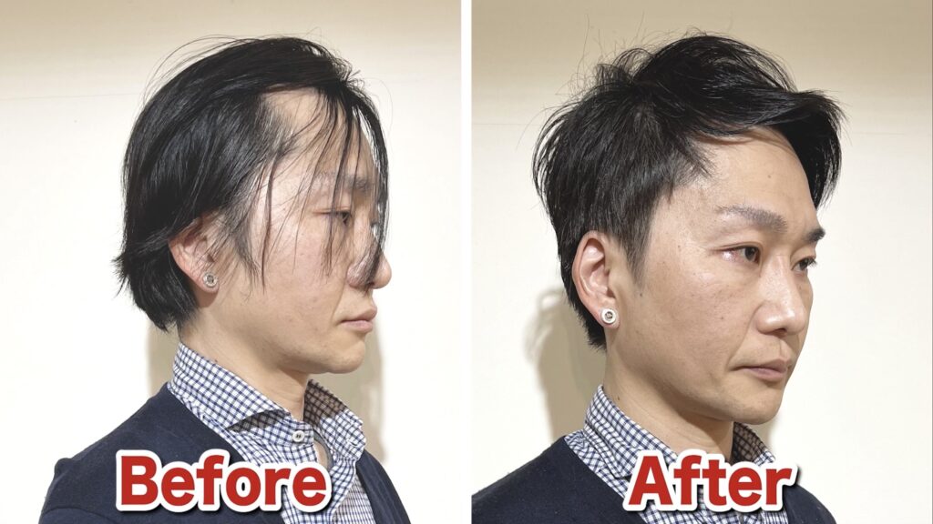 AfterはM字を自然にカバーできて、頭頂部にもボリュームが出ています。