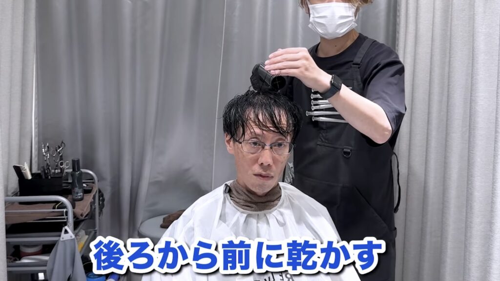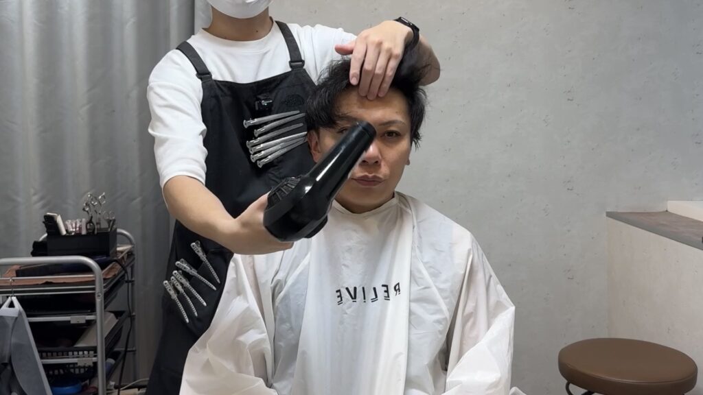 セットの際やることとしては、髪の毛を濡らし、タオルでしっかり拭き、スタイリングミストなど付けてから、頭頂部を持ち上げつつ、顔まわりに髪の毛が集まるようにしっかり乾かすことが大事です。