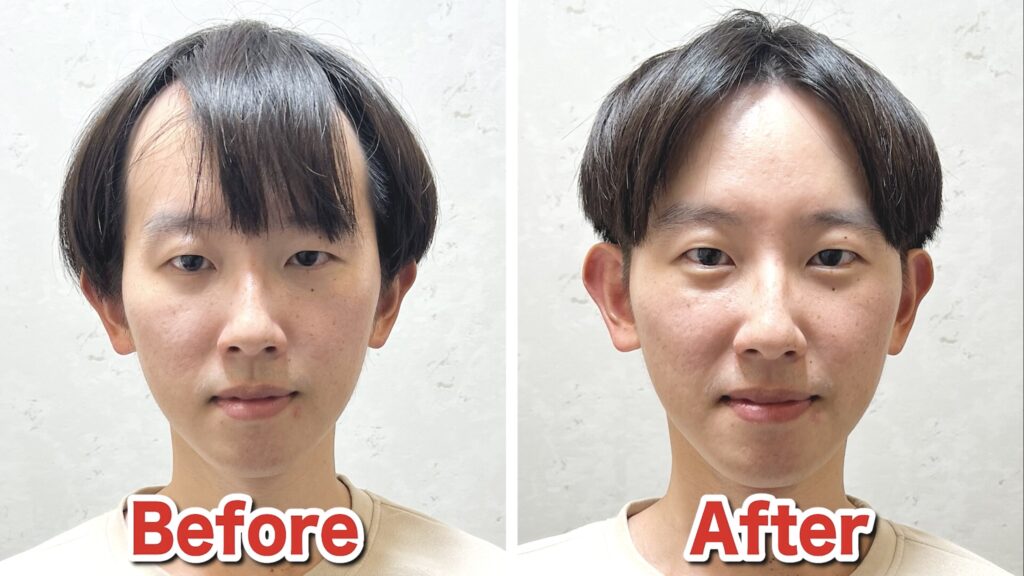 しかし、これは少し分け目を変えてサイドパートにしたり、スタイリングとカットの仕方次第で解決できる問題です。